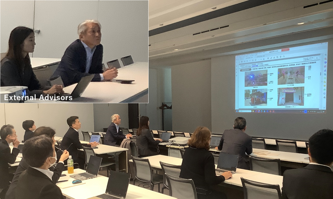 The Human Resources Division reported on improvement of the attendance management system and thorough controls in order to comply with the "Overtime Limit Regulations," which will apply to the construction industry from April 2024, as well as efforts to spread understanding of the contents of the regulations. Then the Construction Division reported on the deployment status of effective efforts to improve business efficiency in response to these issues, overtime work hours, work site closure days and other measures. Next, the Human Resources Division reported on the results of educational and awareness-raising activities, including training and e-learning programs for all levels of employees to prevent harassment. Then the Procurement Division reported on the status of surveys of factory labor at global suppliers, which continued from last year, visiting both primary and secondary companies, as well as directly visiting subcontractors in Japan that employ foreign workers, and also surveys of subcontractors at each main office and branch. All of these efforts have become regular activities in our current business.
