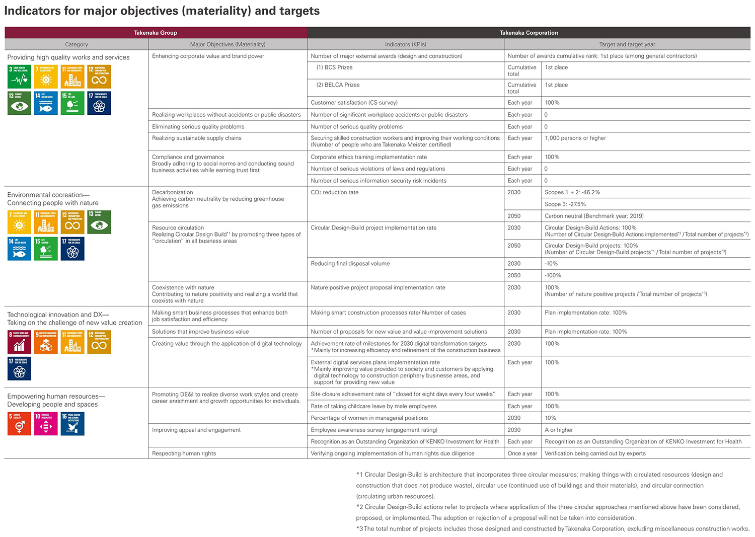 3. Indicators and targets for our group major objectives (materiality)