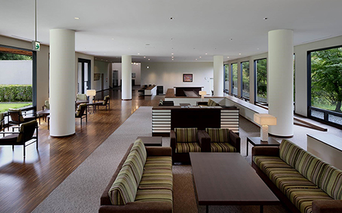 The reborn Takenaka Training Center, Takumi is a space where people can immerse themselves in training and then refresh during breaks. Whether by coffee in the lounge or a walk in the courtyard, the center, perched atop a hill, offers a comfortable environment enveloped in gentle light and tranquility. We also create opportunities for active communication in the hope that a change of pace and casual conversation with colleagues at a place far removed from everyday life will help foster new “awareness.”