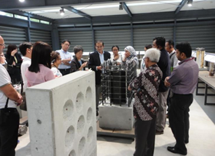 Training is offered to Takenaka's technical employees and to the heads of our supporting affiliates, and is divided into categories: construction, equipment, design, supervision and quality control, repair work, safety, and subcontracting. Programs are in place for beginner, intermediate and advanced levels, and training covers a wide range of topics, including reinforced concrete work, control points for preventing water leakage and accident safety. We also provide training for local global staff.