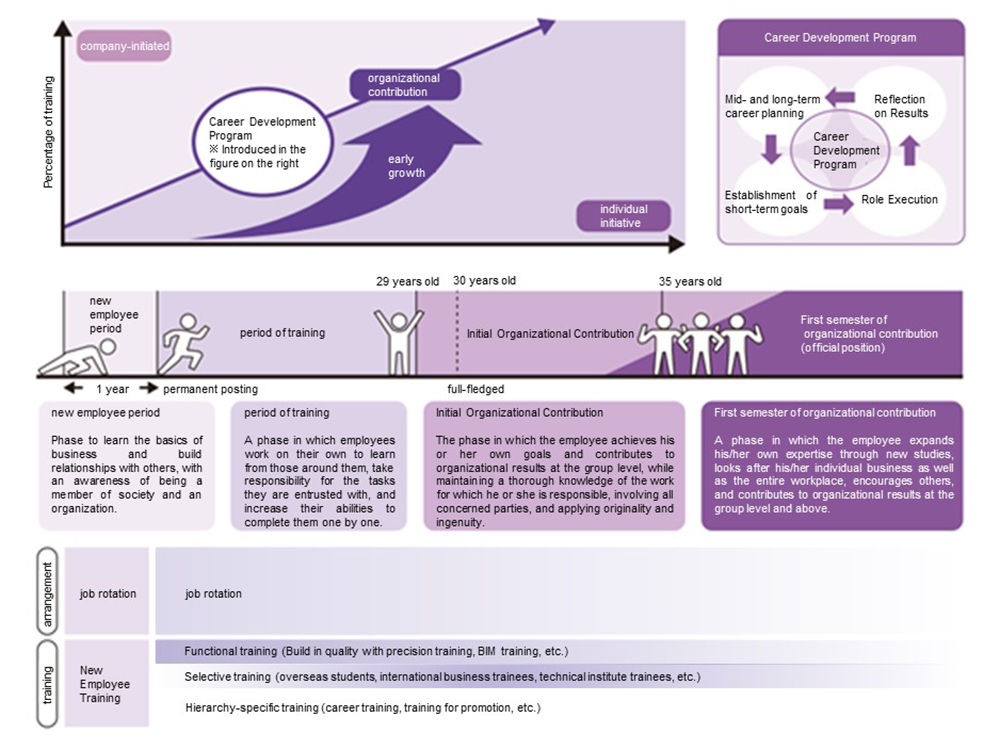 While it is a prerequisite for each employee to develop his or her career autonomously, we take the initiative in their early development, especially with new entrants by placing them in a nurturing period. Our career development program is a mechanism for the company to provide strong support for this effort.