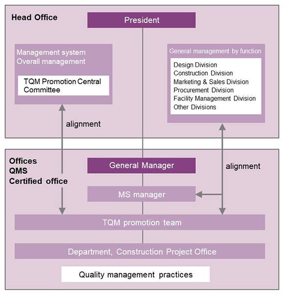 In accordance with our Quality Policy, which is based on our Total Quality Management Basic Policy, we work in unison with our partner companies to promote high-quality architecture that meets customer expectations.