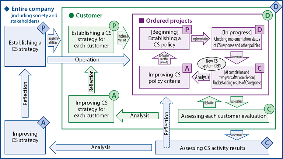 We position customer satisfaction activities as “activities to enhance our position with customers and society,” and we aim to “build strong long-term relationships with customers.”