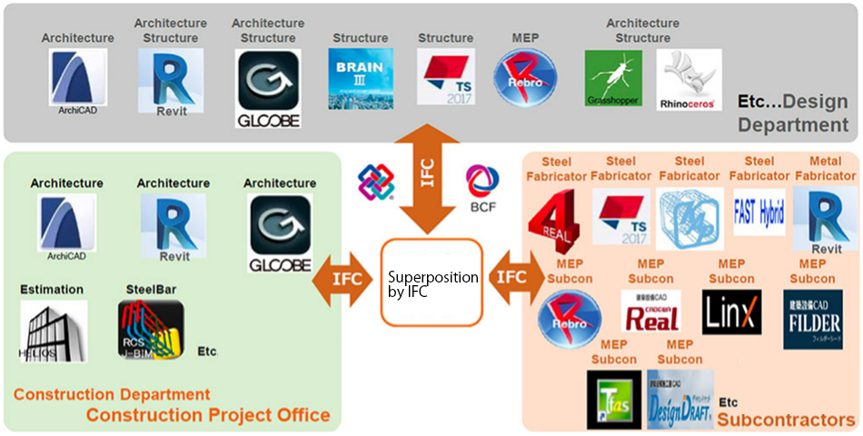 - 1. Utilization of data among designers, builders, and partner companies through the deployment of open BIM