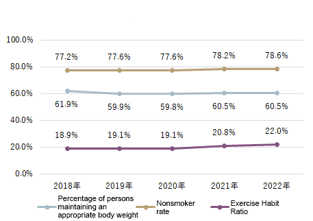 By working to enhance health management and improve awareness of self-management through the use of external certification systems and collaboration inside and outside of the company, we are continually implementing measures that aid in improving health. The following are the results of our health management initiatives.